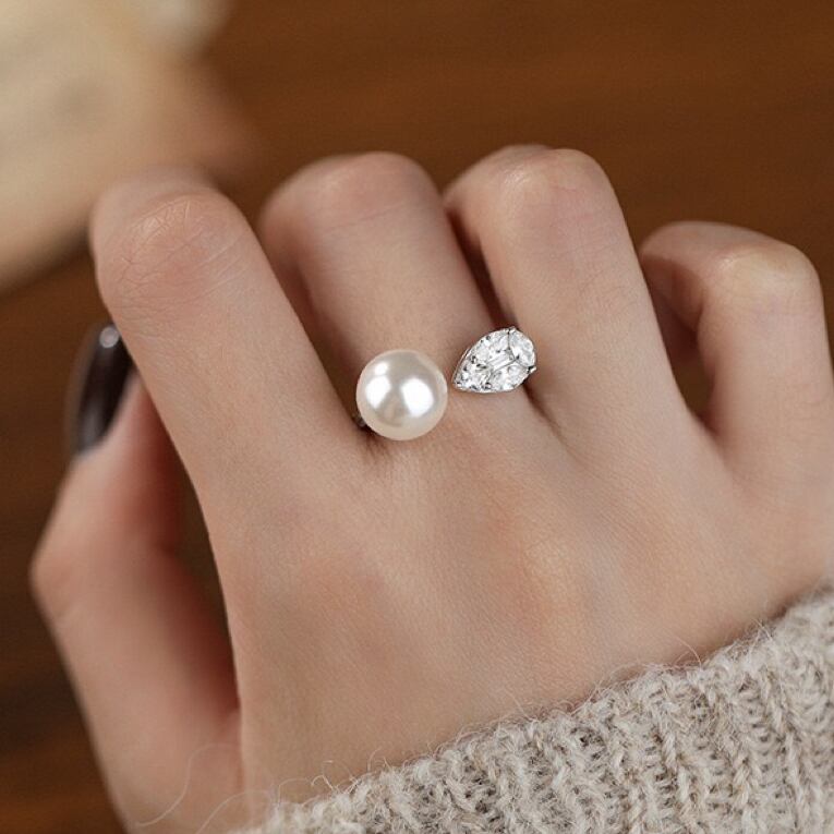 シルバー925 ニュアンス パール リング フリーサイズ 大きさ調整可能 金属アレルギー対応