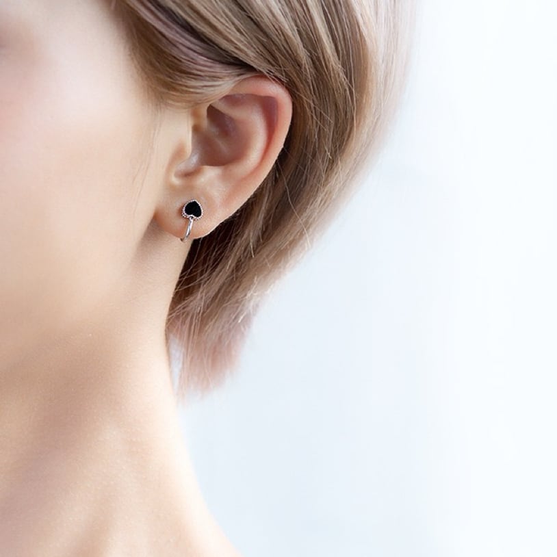 【両耳用】シルバー925 小ぶり ブラック ハート ノンホールピアス イヤーカフ イヤーフック 金属アレルギー対応