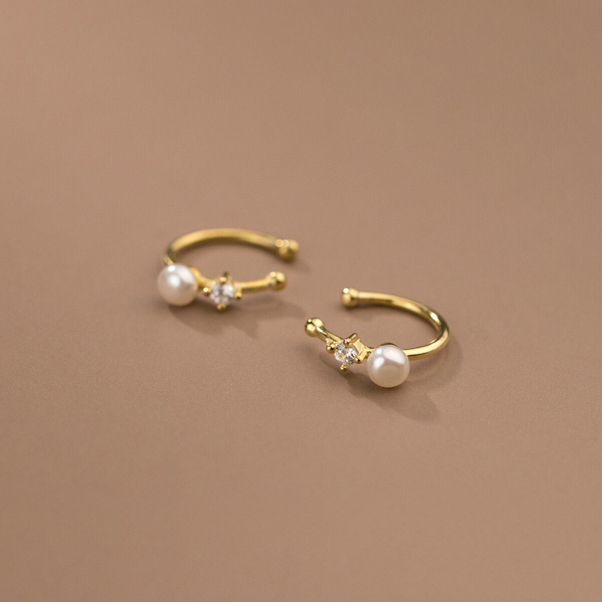 【両耳用】シルバー925 淡水パール ノンホールピアス イヤーカフ イヤーフック 金属アレルギー対応
