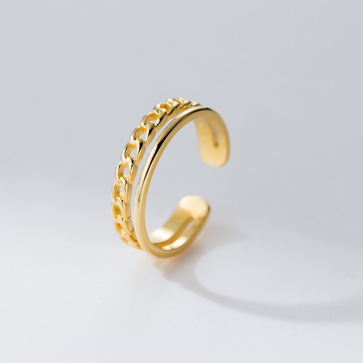 シルバー925 2蓮 チェーン リング 指輪 silver925 フリーサイズ 大きさ調整可能