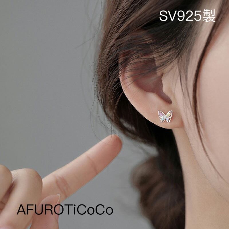 シルバー925 パタライフ ピアス 金属アレルギー対応 大人かわいい 蝶々 スタッドピアス CZダイヤキラキラ