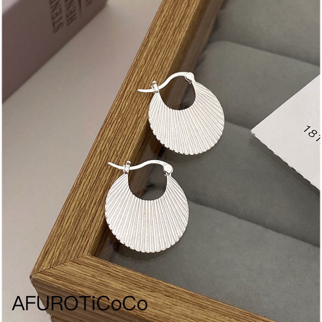 シルバー925 艶消し 扇形 大ぶり ピアス SV925 金属アレルギー対応 大きめ フープピアス