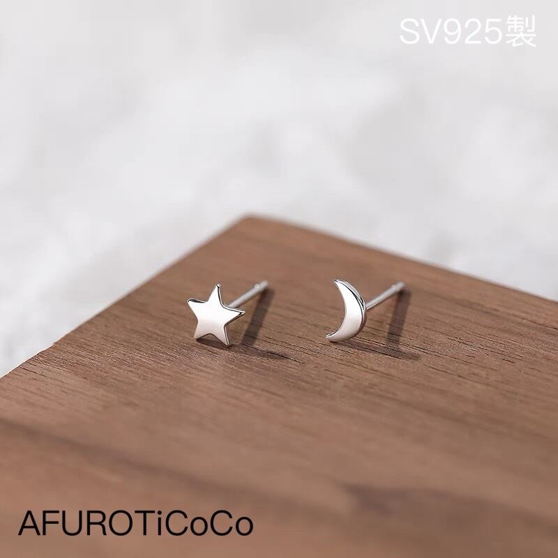 極小 シルバー925 小ぶり 月 星 ピアス ミニピアスつけっぱなし ピアス セカンドピアス 華奢 小さめ 重ねつけ silver925 金属アレルギー対応