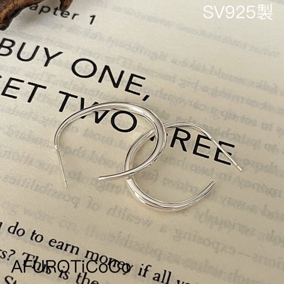 シルバー925 大ぶり フープピアス SV925 金属アレルギー対応 大きめ C型 ピアス シンプルピアス