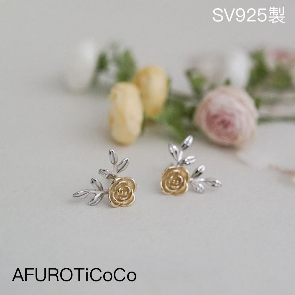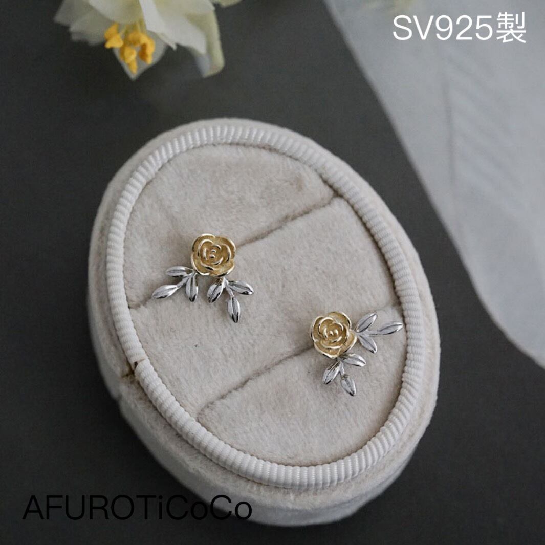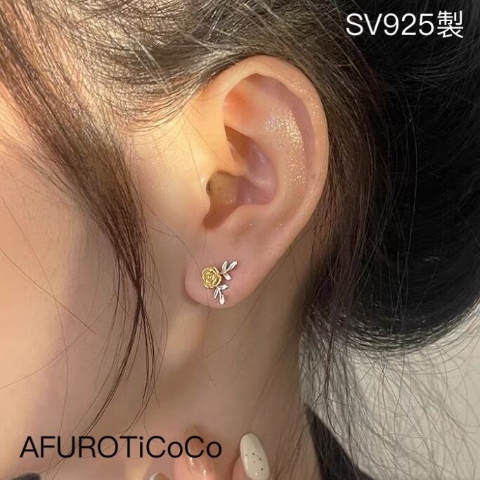 シルバー925 レトロ 2way 小ぶり バラ ピアス ミニピアス つけっぱなし 薔薇 ピアス セカンドピアス 華奢 小さめ 重ねつけ silver925 金属アレルギー対応 韓国風