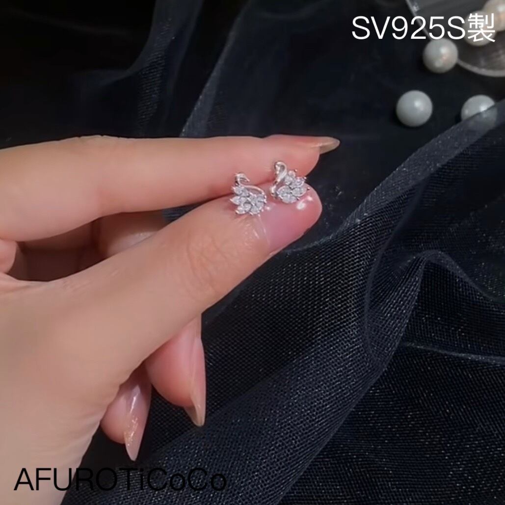 シルバー925 白鳥 ピアス つけっぱなし セカンドピアス 華奢 小さめ 重ねつけ silver925 金属アレルギー対応