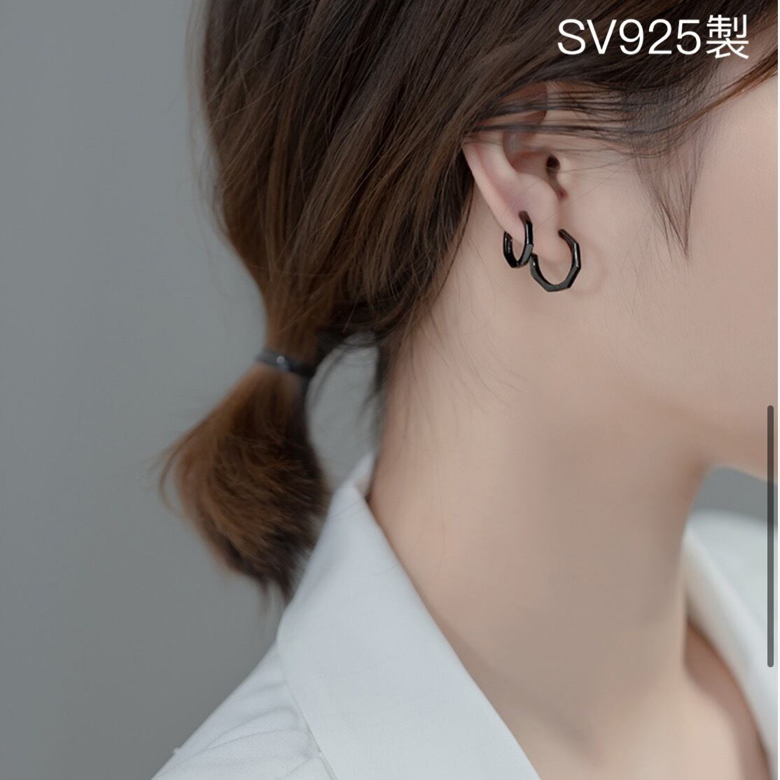 シルバー925 小ぶり ユニセックス フープピアス シンプル ピアス 六角形 ピアス セカンドピアス silver925 金属アレルギー対応