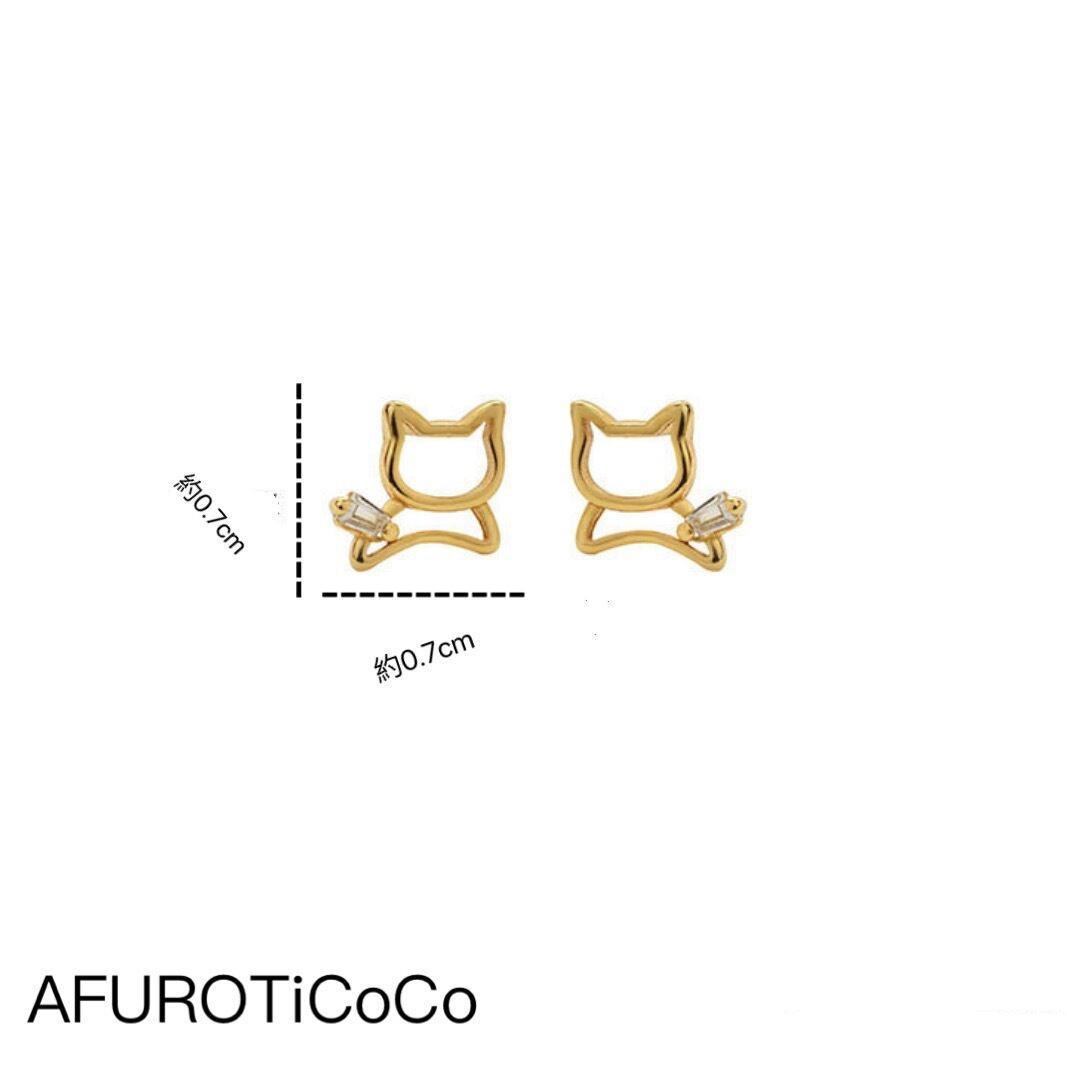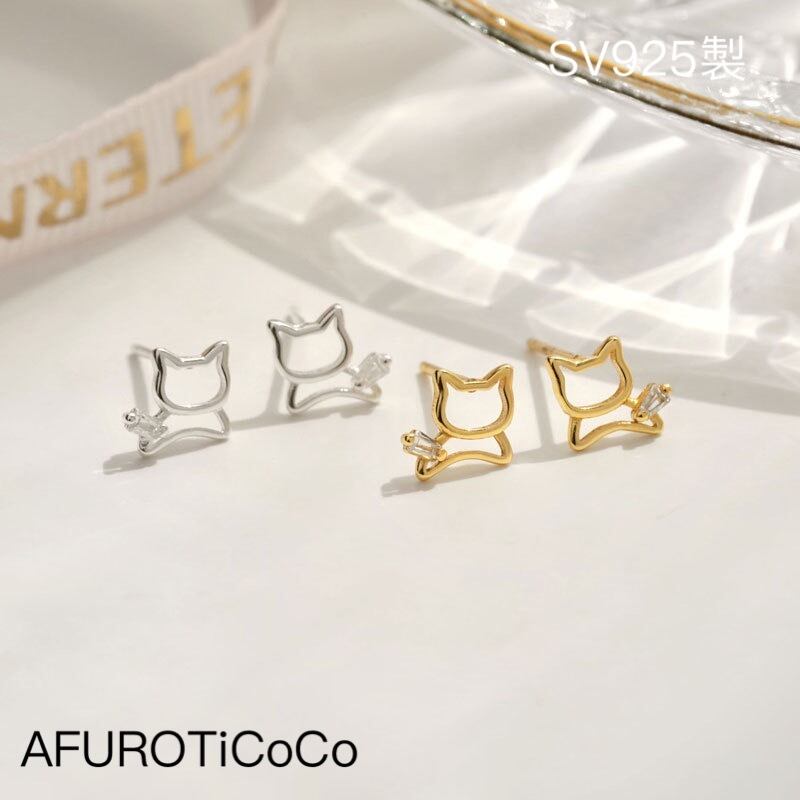 極小 シルバー925 小ぶり ネコ ピアス つけっぱなし 猫 セカンドピアス 華奢 小さめ 重ねつけ silver925 金属アレルギー対応