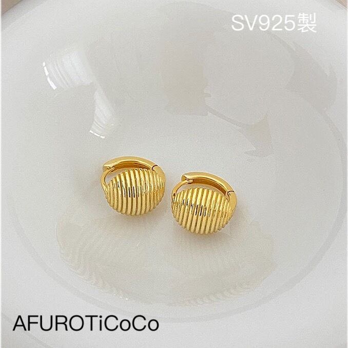 シルバー925 ぷっくり スレッド模様 フープピアス 小さめ ピアス silver925 金属アレルギー対応