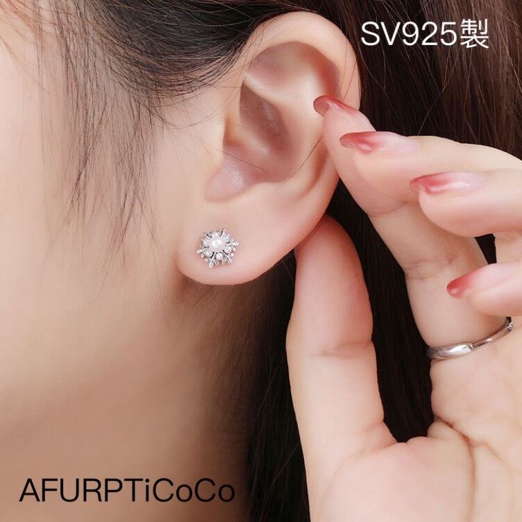 シルバー925 小ぶり 雪の結晶 ピアス つけっぱなし パール セカンドピアス 小さめ 重ねつけ silver925 金属アレルギー対応