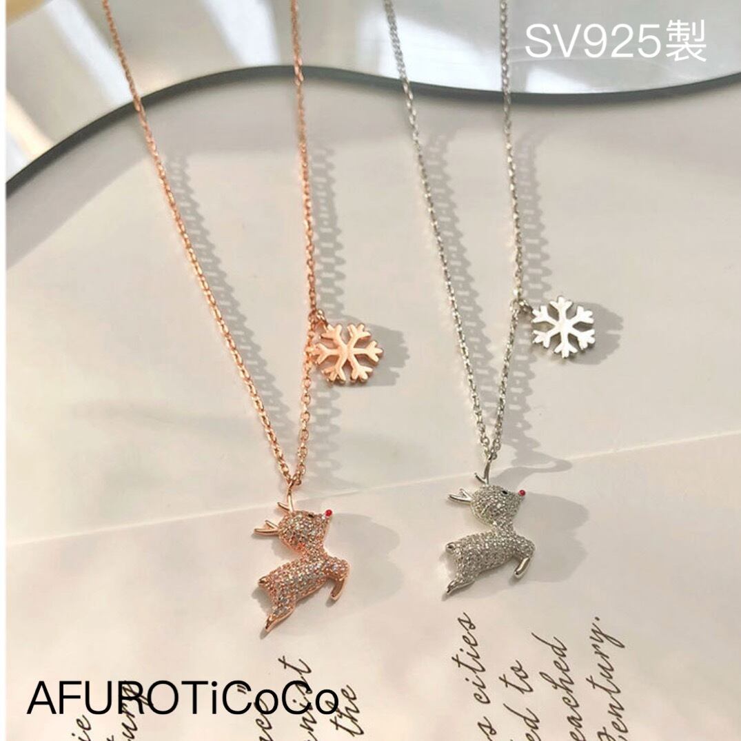 シルバー925 ネックレス キラキラ 雪の結晶 小鹿 シルバー Silver925 ギフト 重ねつけ ネックレス クリスマス ギフト