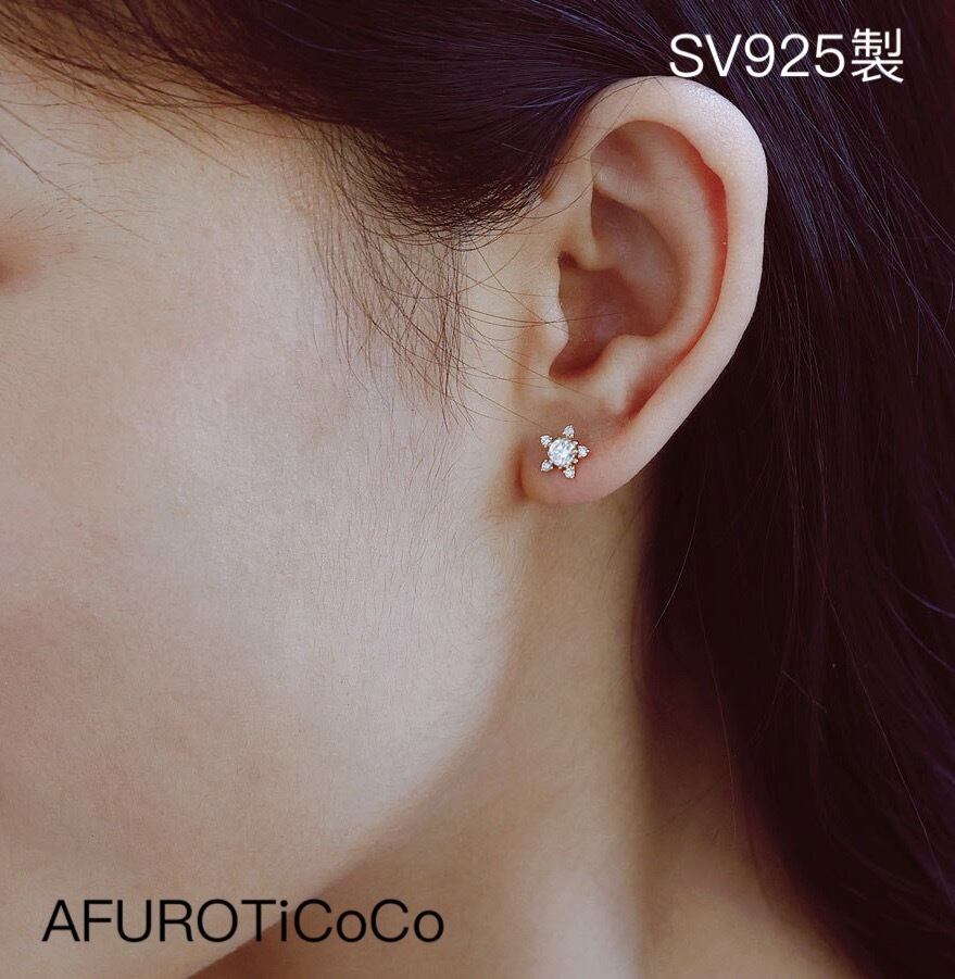 シルバー925 小ぶり キラキラ 五角形 雪の結晶 ピアス ミニピアス つけっぱなし SV925 セカンドピアス 華奢 小さめ 重ねつけ