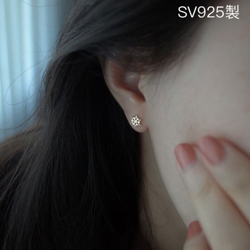 極小 シルバー925 小ぶり キラキラ 雪の結晶 ピアス ミニピアス つけっぱなし SV925 セカンドピアス 華奢 小さめ 重ねつけ
