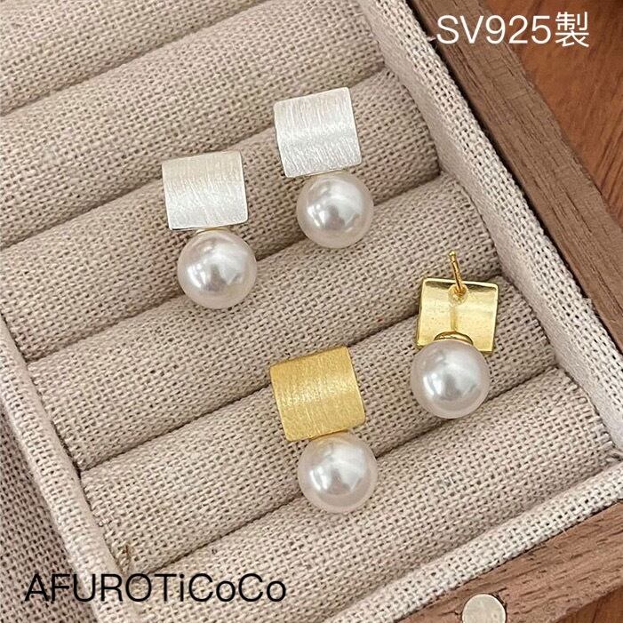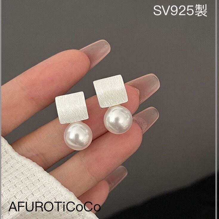 シルバー925 艶消し パール スクエア ピアス silver925 スタッドピアス 金属アレルギー対応 韓国風