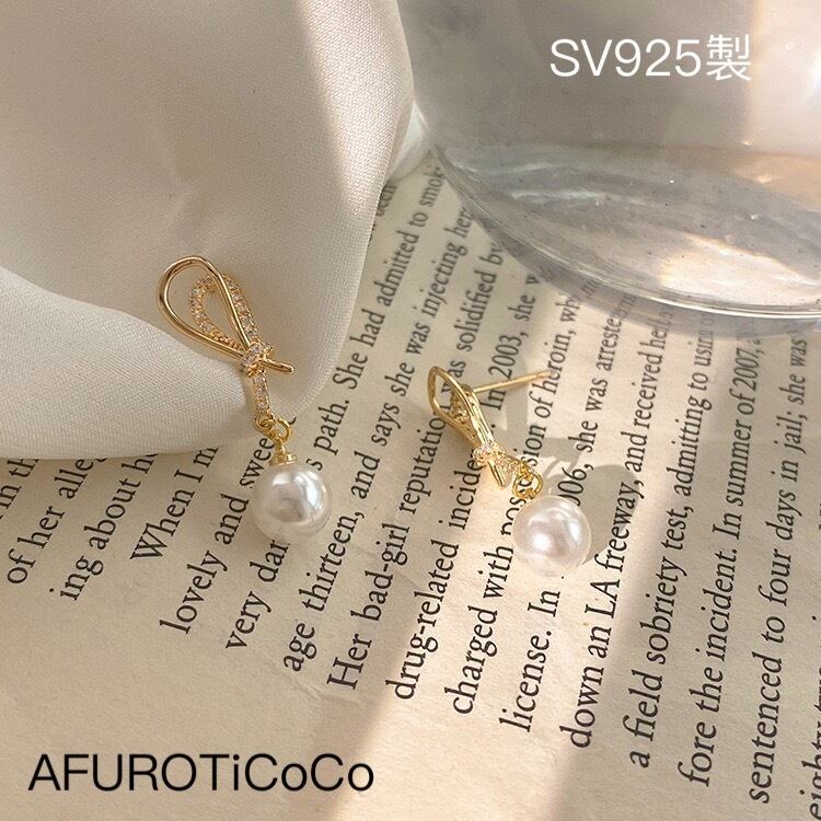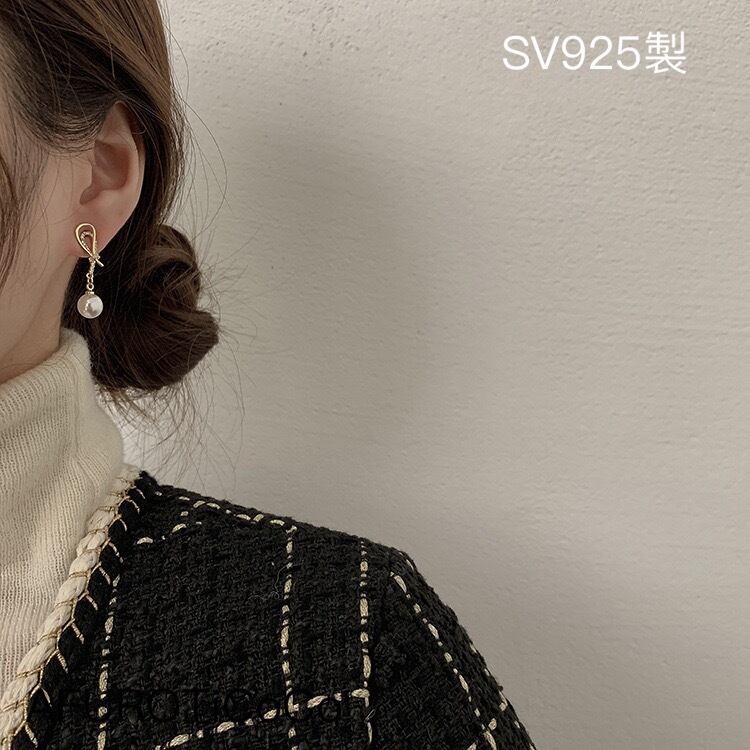シルバー925 小ぶり キラキラ 揺れる パール リボン ピアス ミニピアス つけっぱなし SV925 セカンドピアス 小さめ 重ねつけ