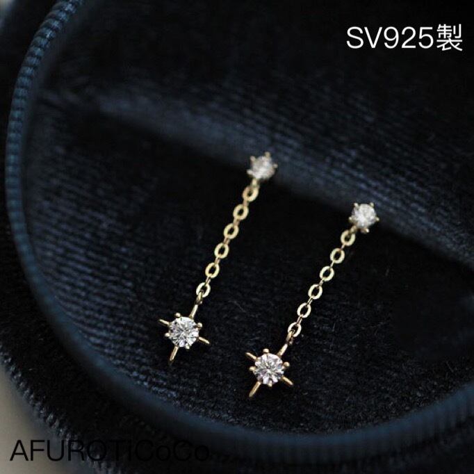 極小 シルバー925 揺れる 八芒星 チェーン ピアス ミニピアス つけっぱなし SV925 セカンドピアス 華奢 小さめ 重ねつけ 職場使える