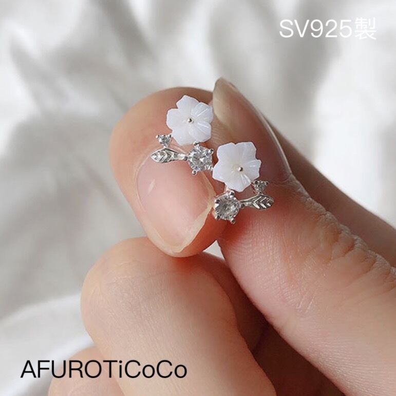 シルバー925 梅花 ピアス SV925 上品 セカンドピアス 小さめ 重ねつけ 金属アレルギー対応