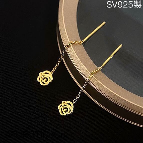 極小 シルバー925 揺れる 薔薇 チェーン ピアス ミニピアス つけっぱなし SV925 バラ セカンドピアス 華奢 小さめ 重ねつけ 職場使える