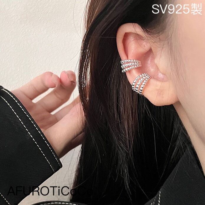 両耳用 三連 フープ イヤーカフ シルバー925 金属アレルギー対応 大人かわいい フープピアス ノーホル 重ね付け