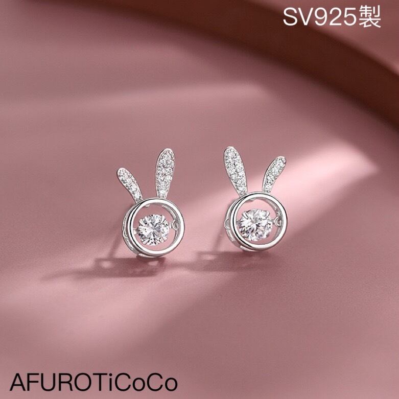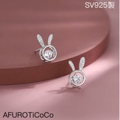 シルバー925 キラキラ ウサギ耳 ピアス つけっぱなし SV925 兎耳 セカンドピアス 華奢 小さめ 重ねつけ