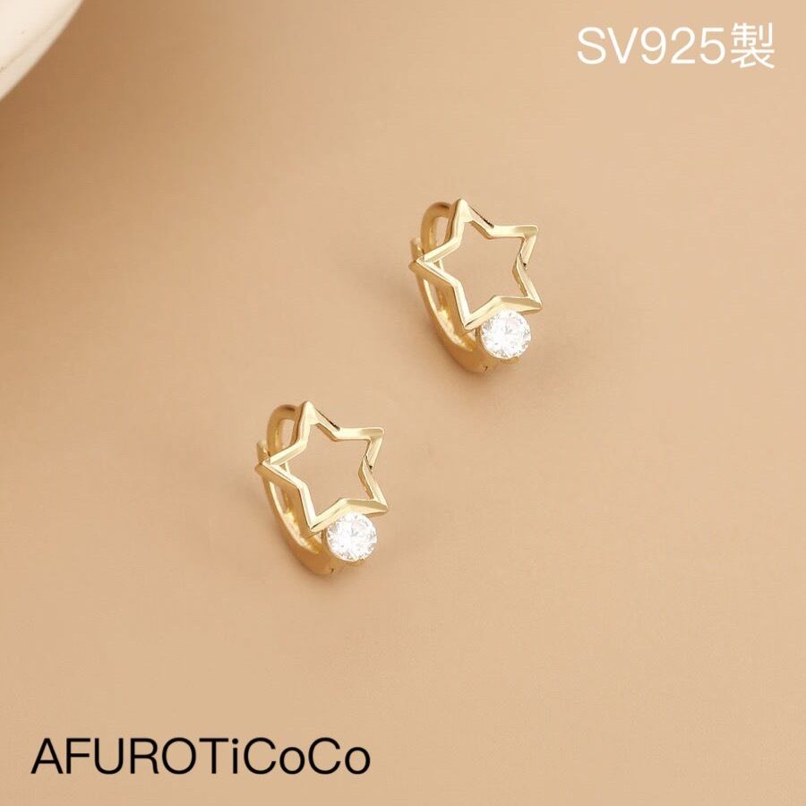 シルバー925 小ぶり スター フープピアス silver925 小さめ 星 ピアス 金属アレルギー対応 韓国風