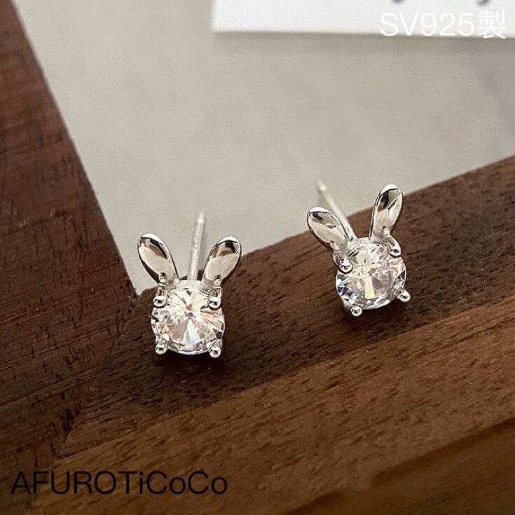 シルバー925 一粒CZダイヤ ウサギ耳 ピアスSV925 兎 セカンドピアス 華奢 小さめ 重ねつけ