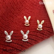 シルバー925 キラキラ ウサギ耳 ピアスSV925 兎 セカンドピアス 華奢 小さめ 重ねつけ