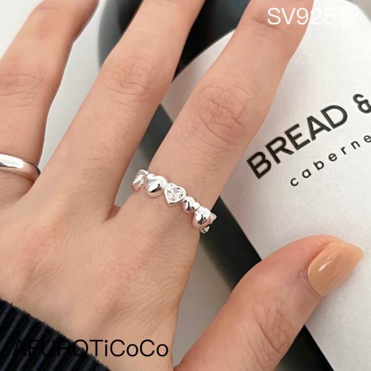 シルバー925 ハート リング 指輪 Silver925 フリーサイズ 大きさ調整可能 重ねつけ