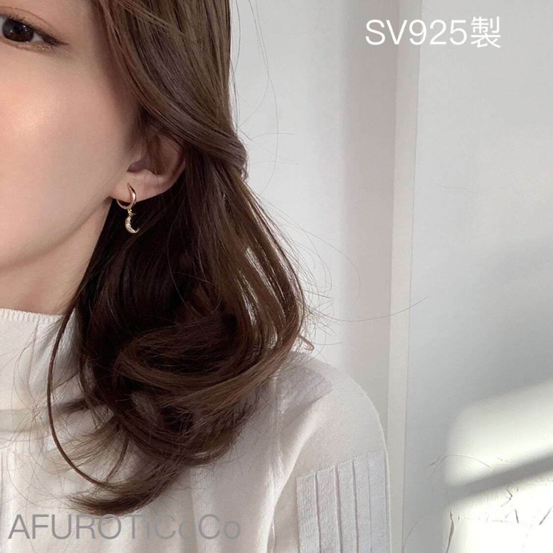 シルバー925 小ぶり 揺れる フープ ピアス silver925 左右非対称 月 星 ピアス 金属アレルギー対応 重ねつけ