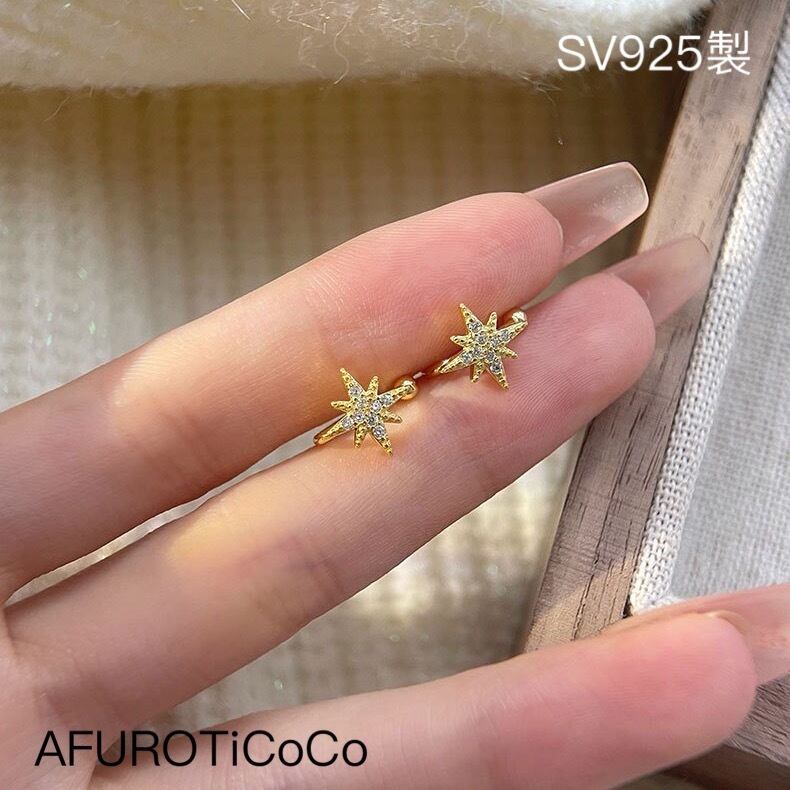 シルバー925 両耳用 八芒星 CZダイヤ イヤーカフ 大人かわいい ノンホール 重ね付け