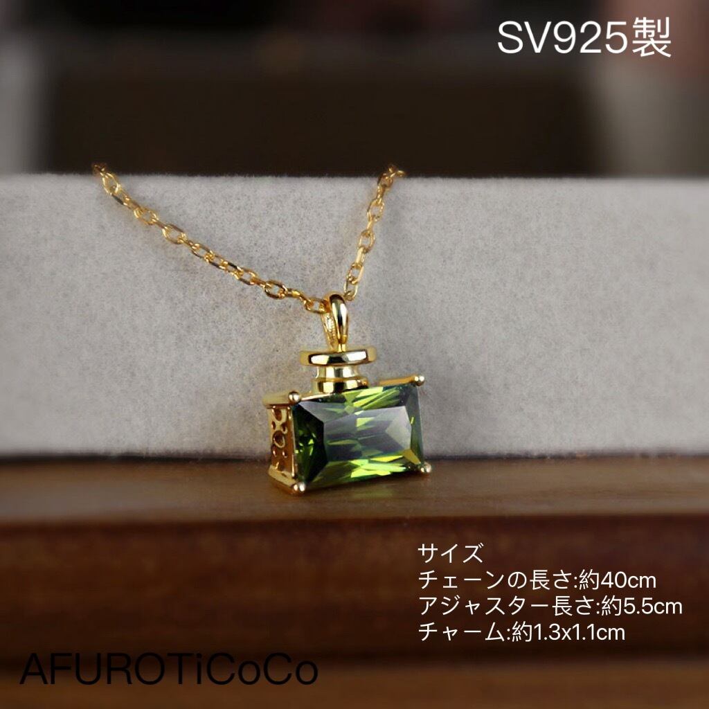 シルバー925 エメラルドカラー ネックレス 香水ボトル チャーム Silver925 重ねつけ