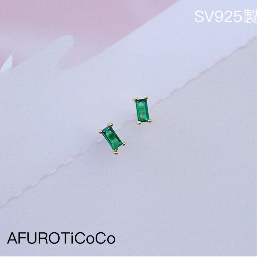 極小 シルバー925 小ぶり エメラルドカラー スクエア ミニピアス SV925 セカンドピアス 華奢 小さめ 重ねつけ 金属アレルギー対応