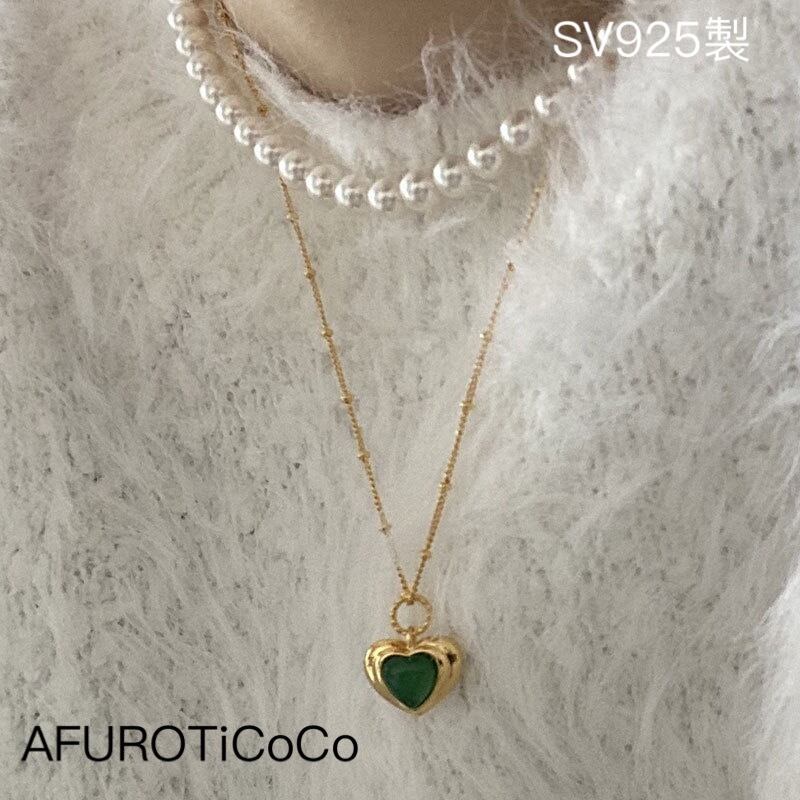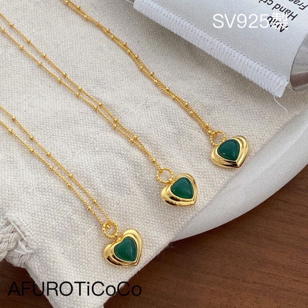 シルバー925 グリーンメノウ ハートチャーム ネックレス シルバー Silver925 ギフト 重ねつけ ギフト プレゼント