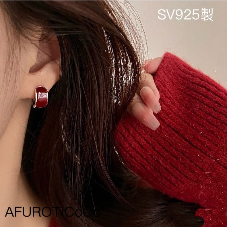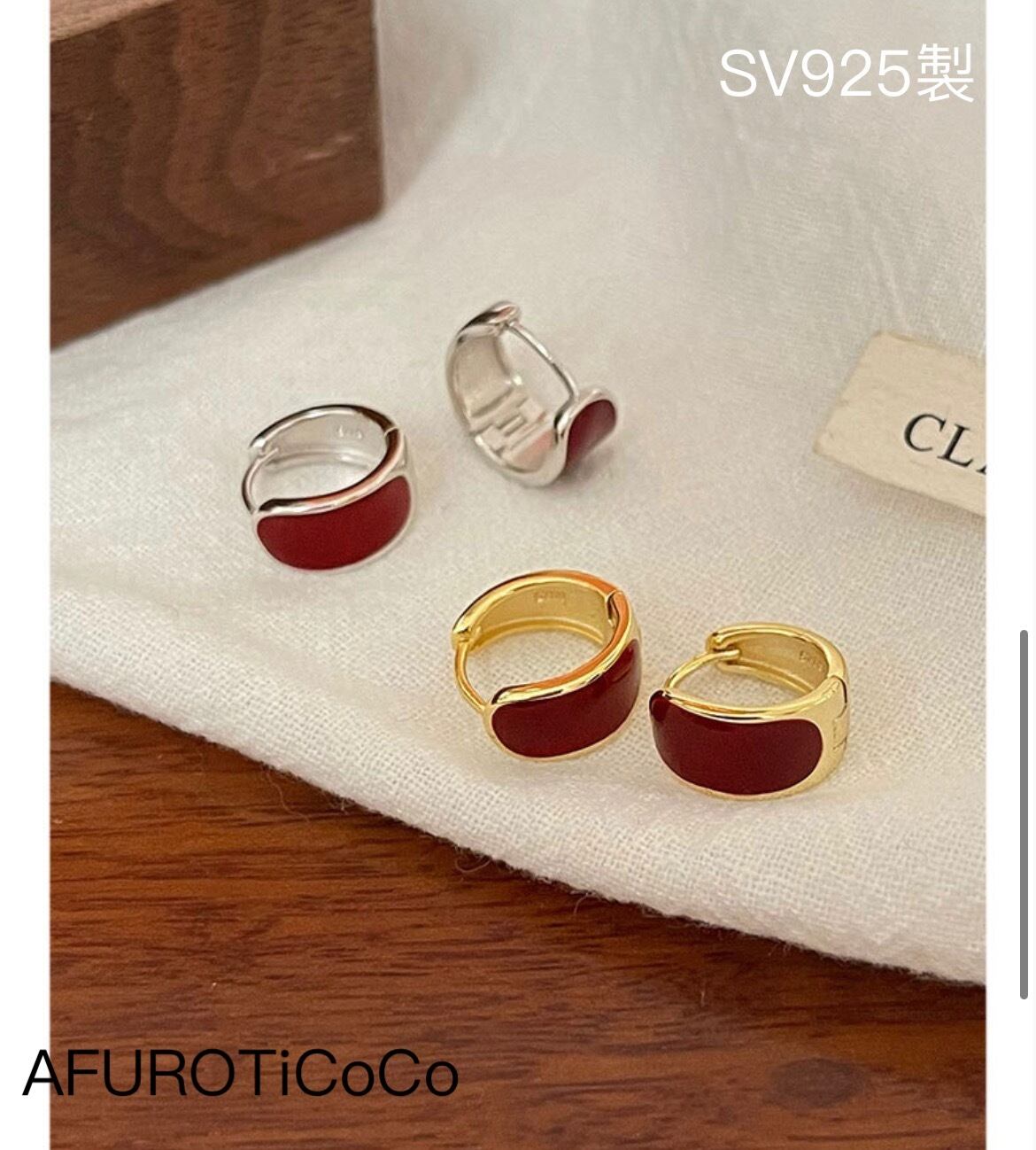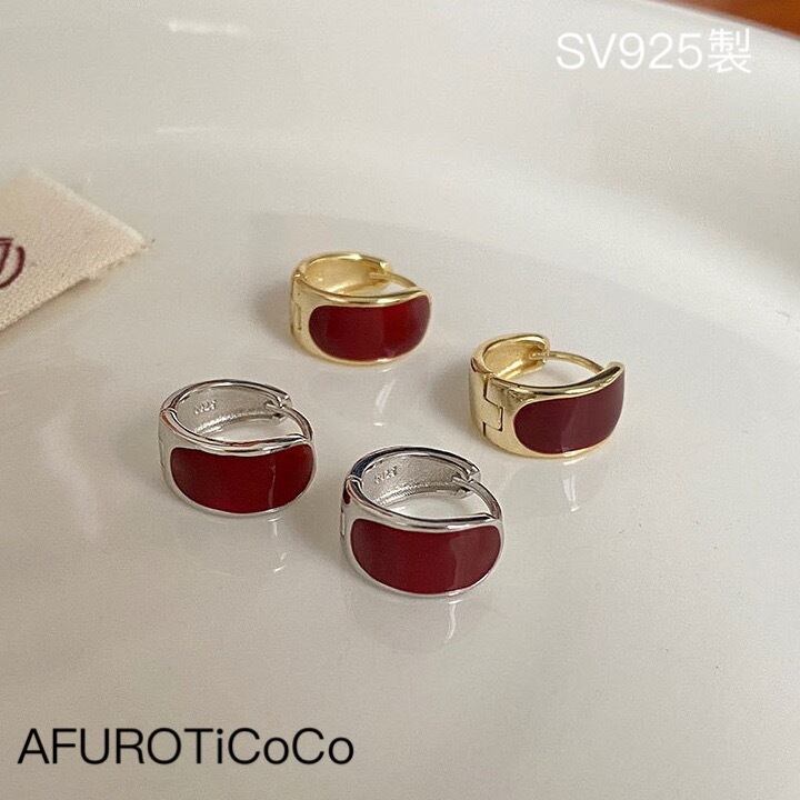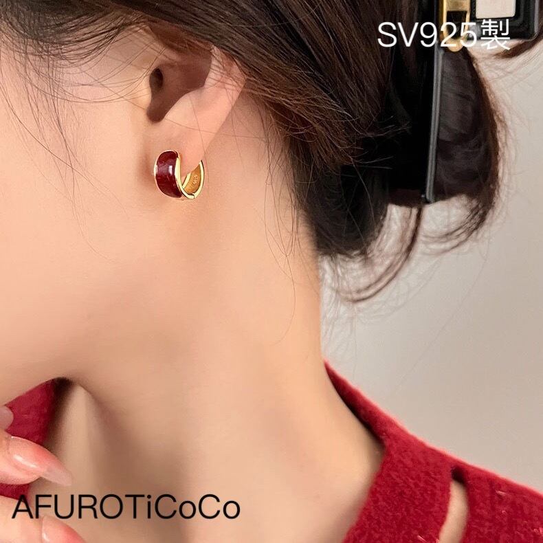 シルバー925 レトロ レッド フープピアス silver925 セカンドピアス 金属アレルギー対応 重ねつけ