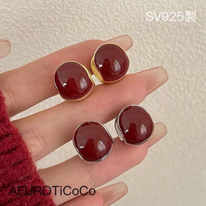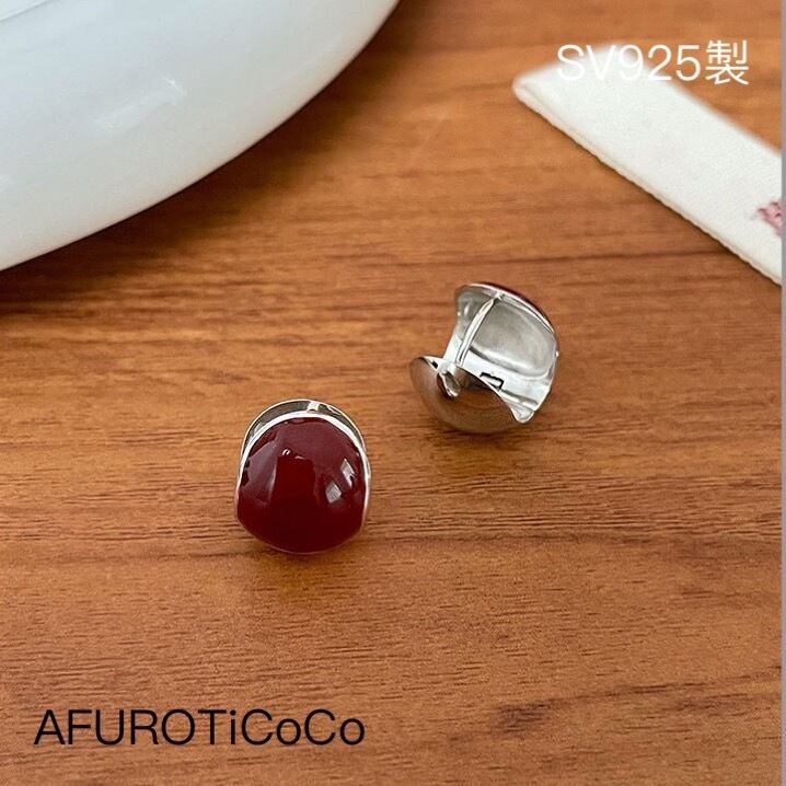 シルバー925 レトロ レッド 円形 フープピアス silver925 セカンドピアス 金属アレルギー対応 重ねつけ