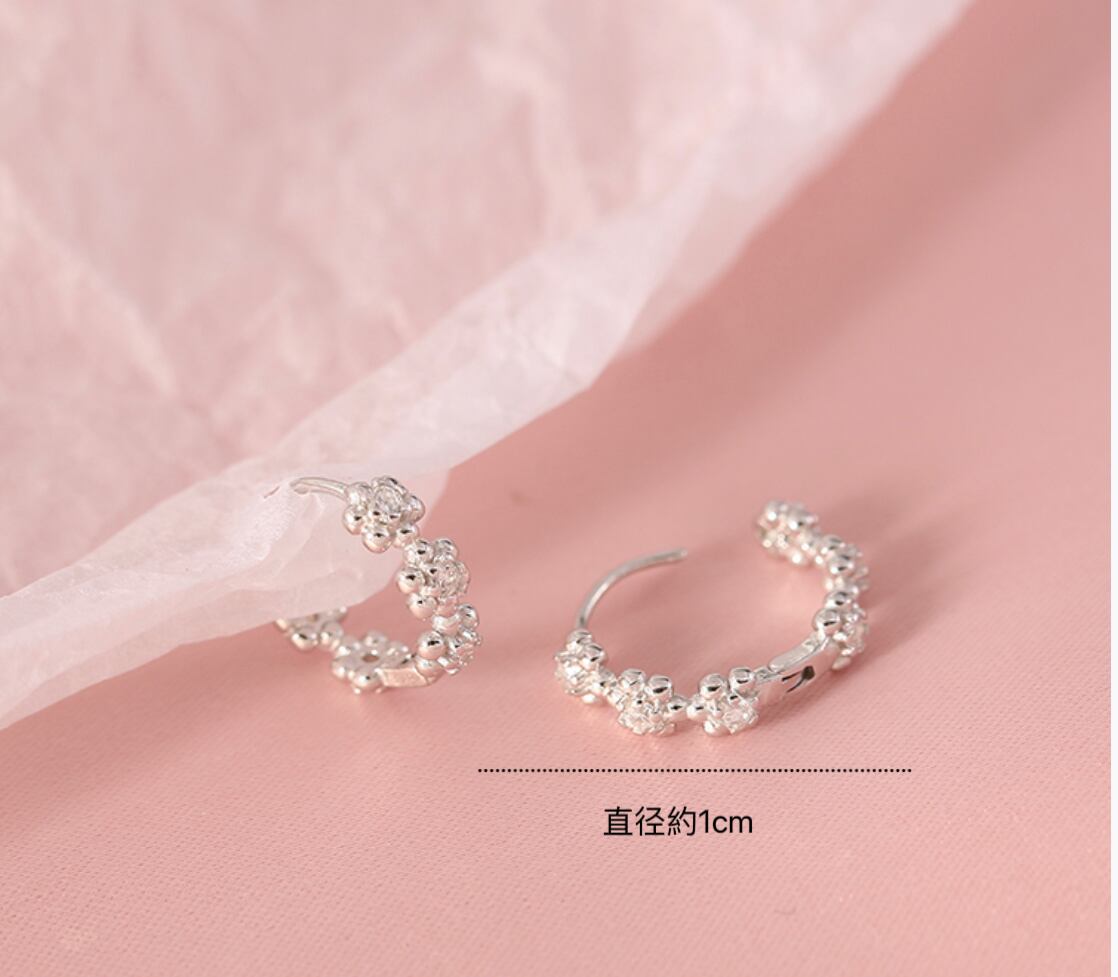 シルバー925 小ぶり 一連小花 フープピアス つけっぱなし SV925 セカンドピアス 華奢 小さめ重ねつけ