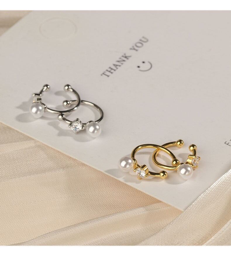 【両耳用】SV925 パール ジュルコニア ノンホールピアス つけっぱなし 小さめ イヤーフック 金属アレルギー対応 重ねつけ