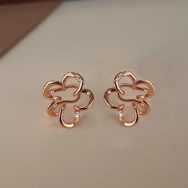 【両耳用】SV925 レトロ ツバキ ノンホールピアス つけっぱなし 小さめ イヤーフック 金属アレルギー対応 重ねつけ