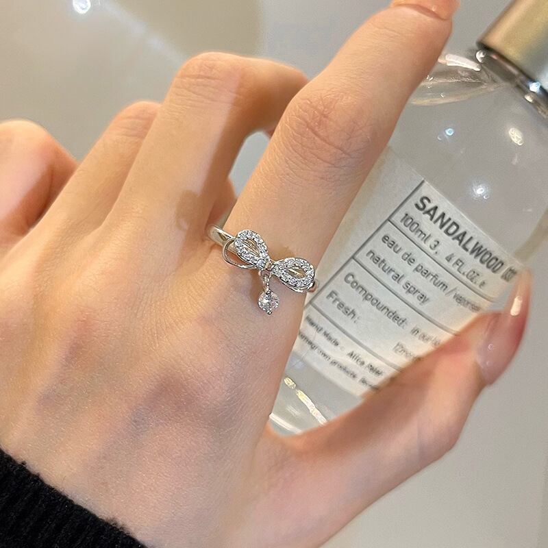 シルバー925 華奢 細め 上品 リボン リング 指輪 silver925 フリーサイズ 大きさ調整可能 4334YCR