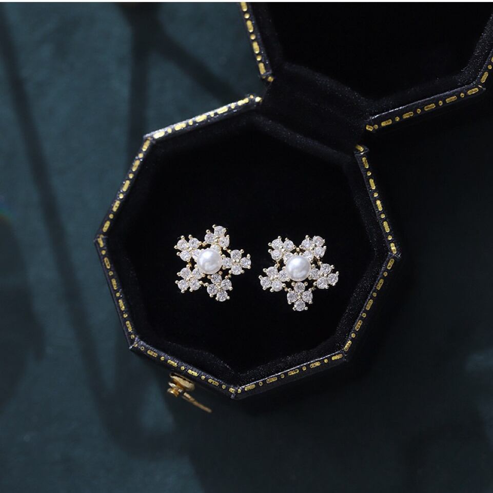 SV925 小ぶり キラキラ 雪の結晶 つけっぱなし 小さめ ピアス 金屬アレルギー対応 セカンドピアス 重ねつけ