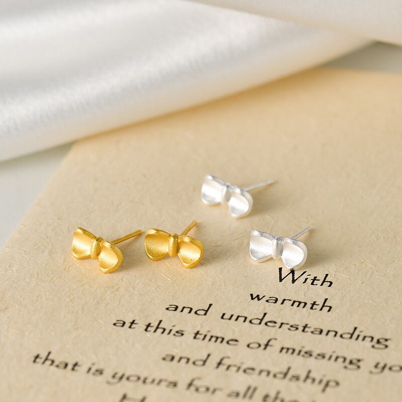 SV925 小ぶり マット リボン ピアス 金屬アレルギー対応 小さめ セカンドピアス 重ねつけ