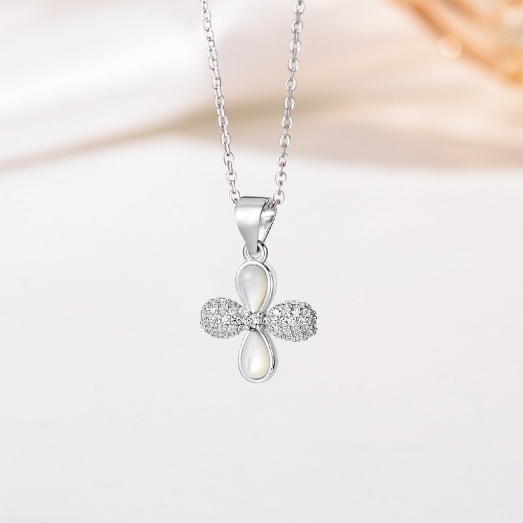 シルバー925 幸運 クローバー 天然貝 ペンダント チャーム ネックレス silver925