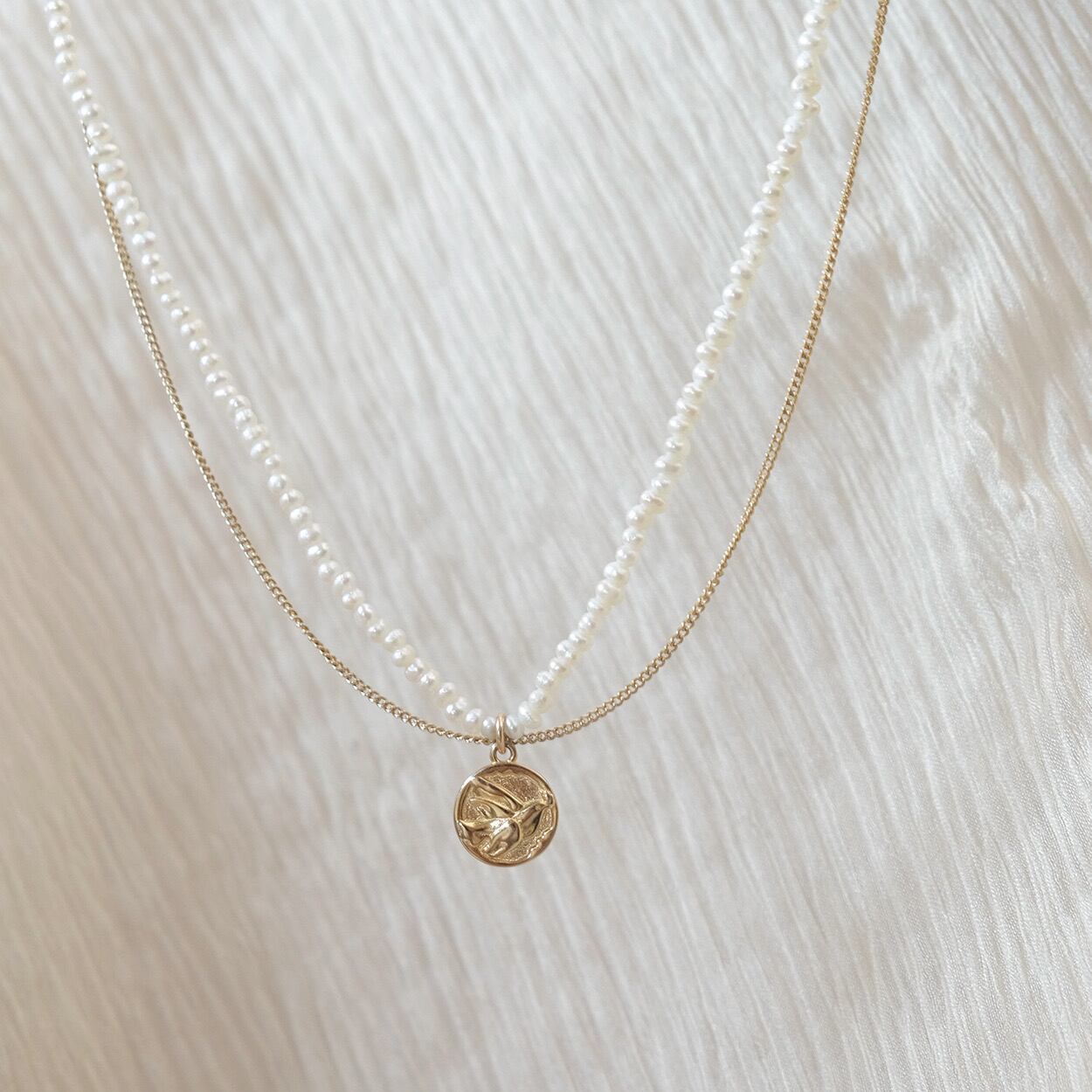 シルバー925 2連 淡水パール ラウンド チャーム ペンダント ネックレス silver925
