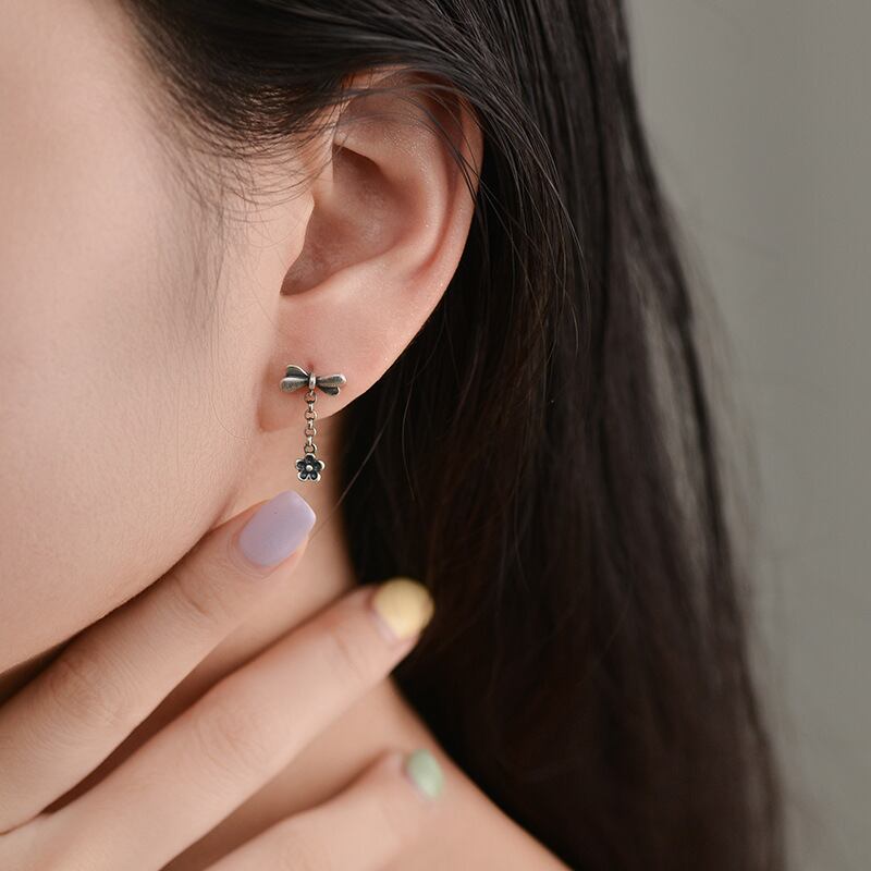 SV925 小ぶり 揺れる ヴィンテージ リボン ピアス つけっぱなし 小さめ ピアス 金屬アレルギー対応 セカンドピアス 重ねつけ