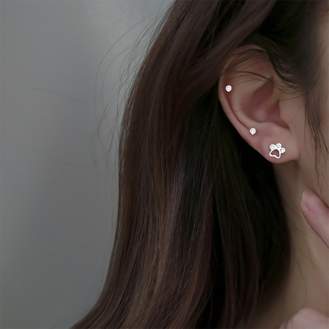 SV925 小ぶり かわいい 肉球 ピアス つけっぱなし 小さめ ピアス 金屬アレルギー対応 セカンドピアス 重ねつけ