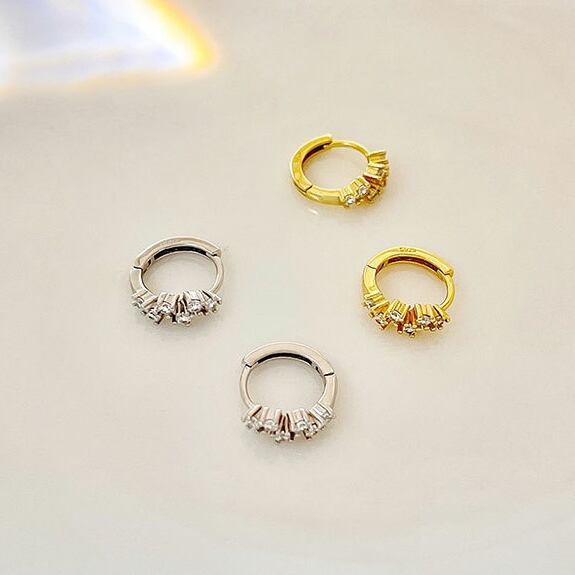 シルバー925 小ぶり 幾何形 キラキラ フープピアス つけっぱなし ピアス 金属アレルギー対応 小さめ セカンドピアス 重ねつけ