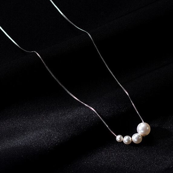シルバー925 高見え シンプル 4連パール チャーム ペンダント ネックレス silver925