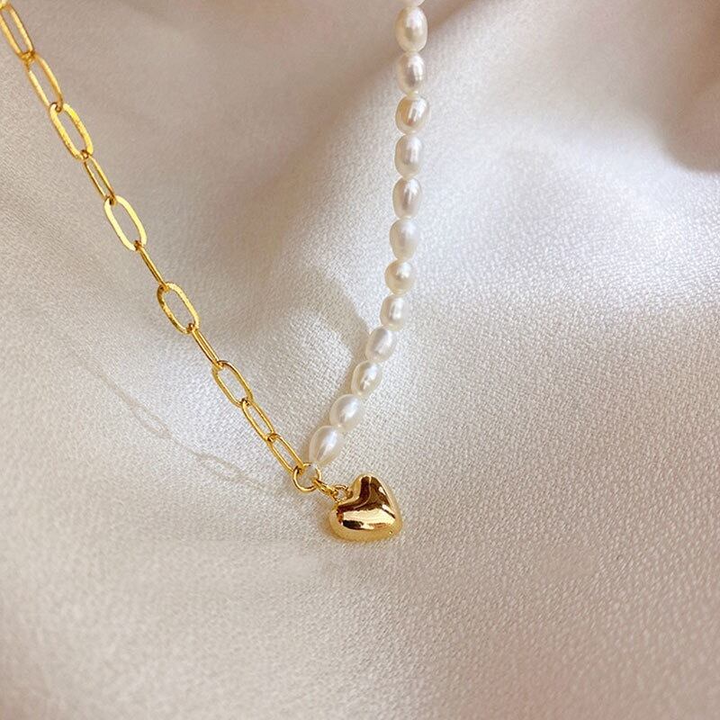 シルバー925 プレミアム 淡水バロックパール ハート チャーム ペンダント ネックレス silver925