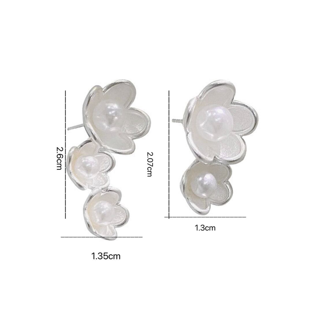 シルバー925 大きめ 左右非対称 上品お花 ピアス つけっぱなし ピアス 金属アレルギー対応 セカンドピアス 重ねつけ
