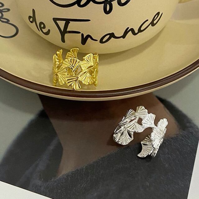 シルバー925 プレミアム 広幅 透かし イチョウの葉 リング 指輪 silver925 フリーサイズ 大きさ調整可能